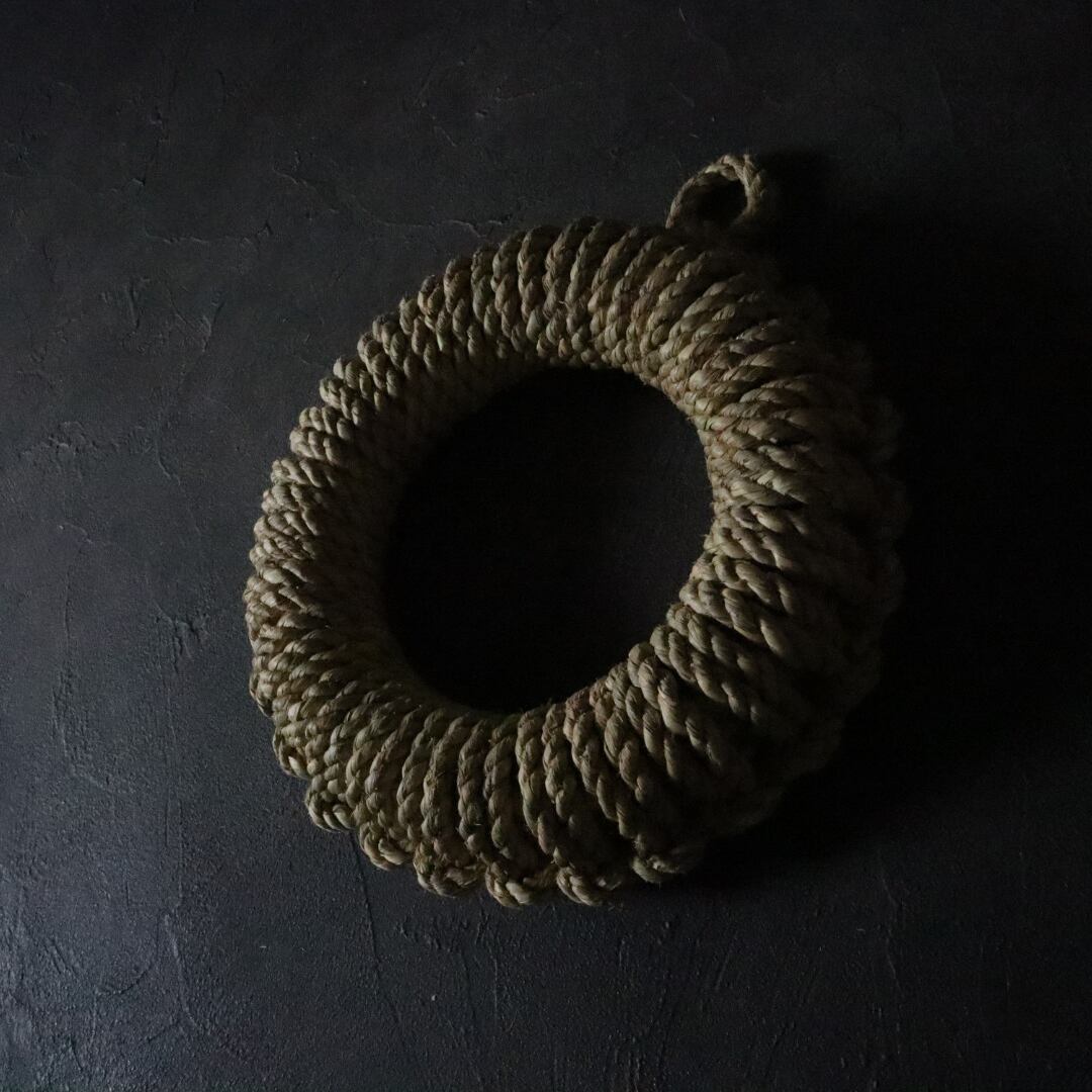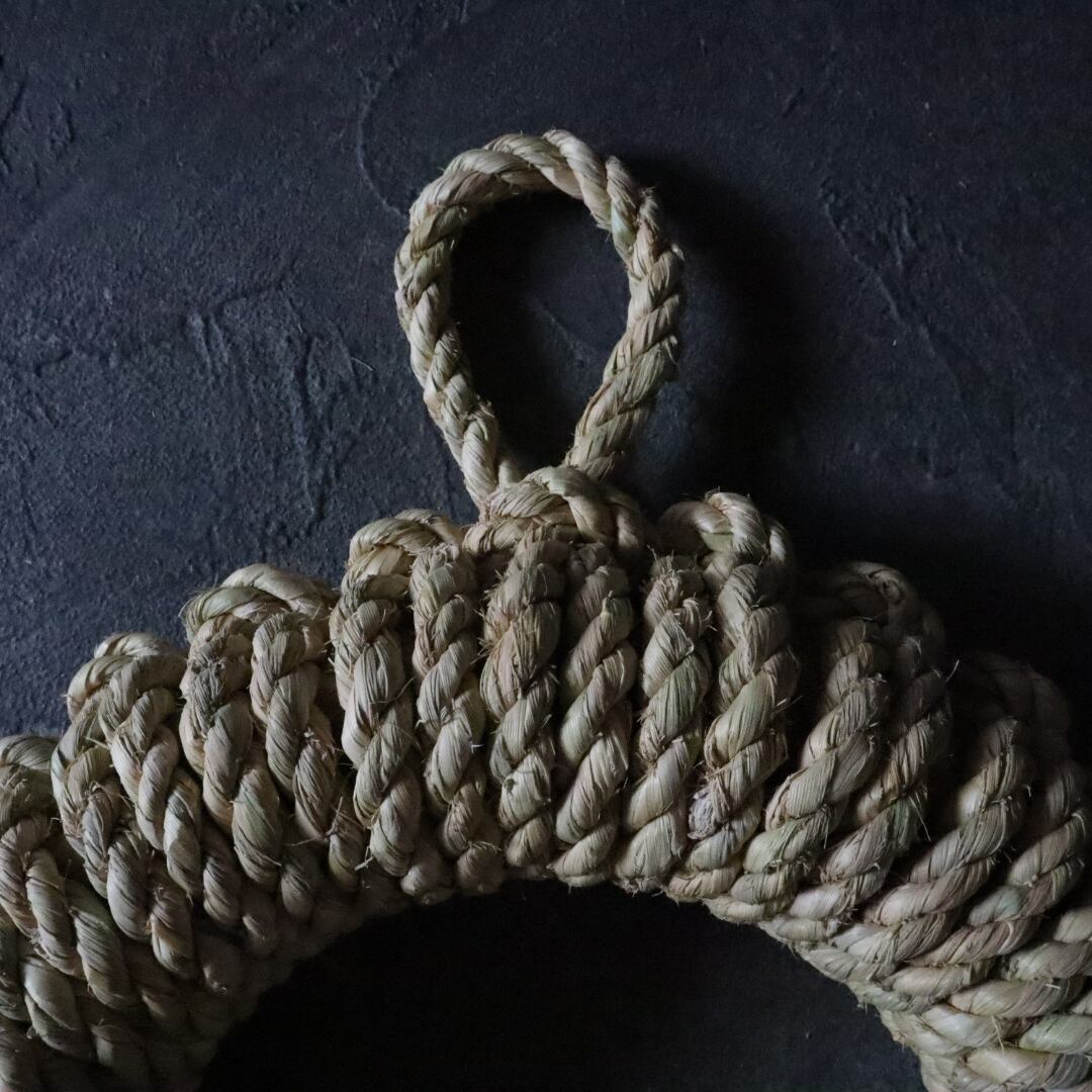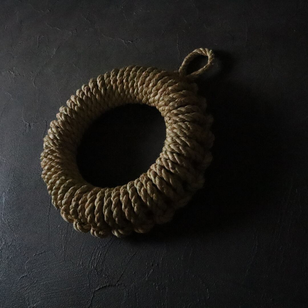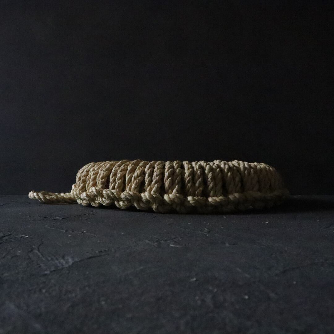 藁の鍋敷きは一般的には2つぐりの縄という簡易的な縄を編み込んでいきますが、本品は3つぐりの縄というしめ縄や縁起物の飾りに使う美しく強度の増した縄を使用しています。